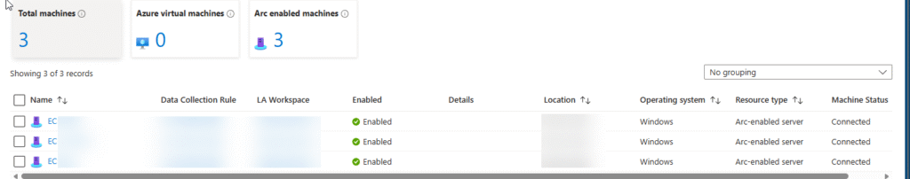 That’s it. From there, Azure takes care of collecting and organizing all the data for you. You can see on which server this feature is enabled as which DCR & Workspace is connected.